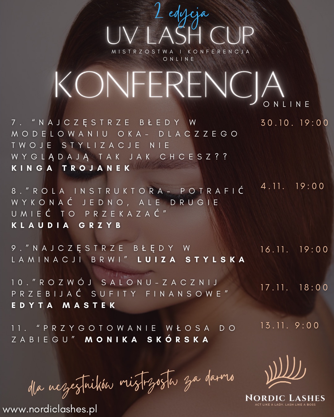 - 16.11, godz. 19:00 Temat: „Najczęstsze błędy w laminacji brwi” Prowadząca: Luiza Stylska
